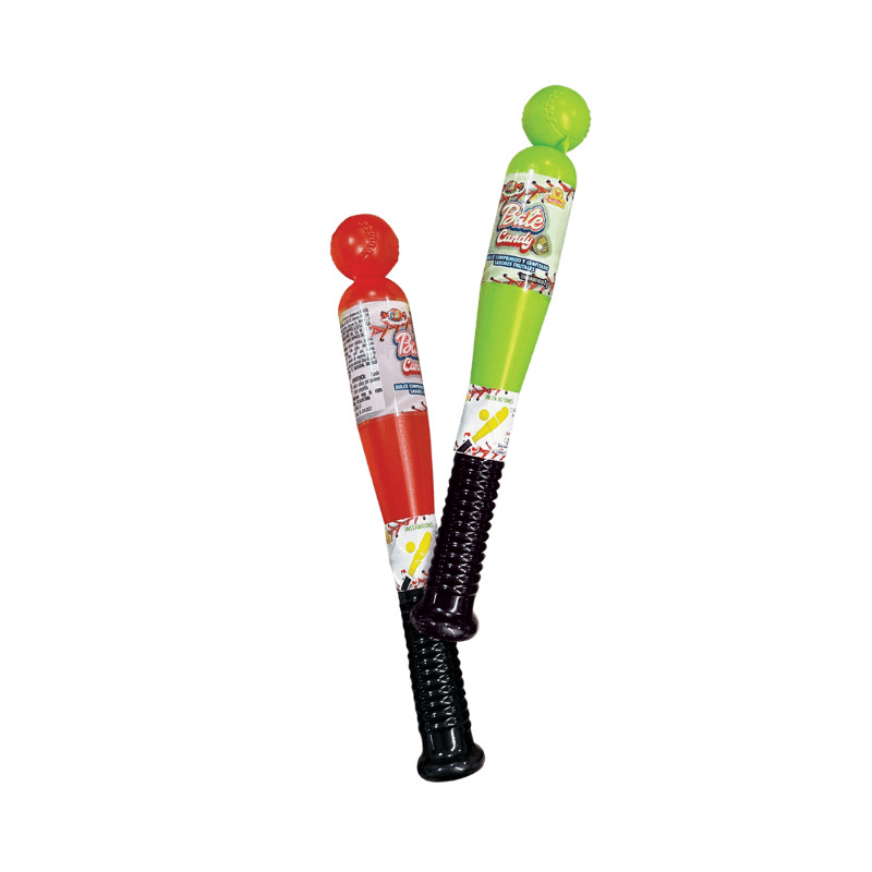 Bate Candy es un dulce comprimido y confitado con forma de bate de béisbol, pensado para atraer por su diseño único y su combinación de colores vibrantes. Es un producto llamativo que mezcla diversión con una textura crujiente, ideal para quienes buscan una golosina distinta y memorable.
