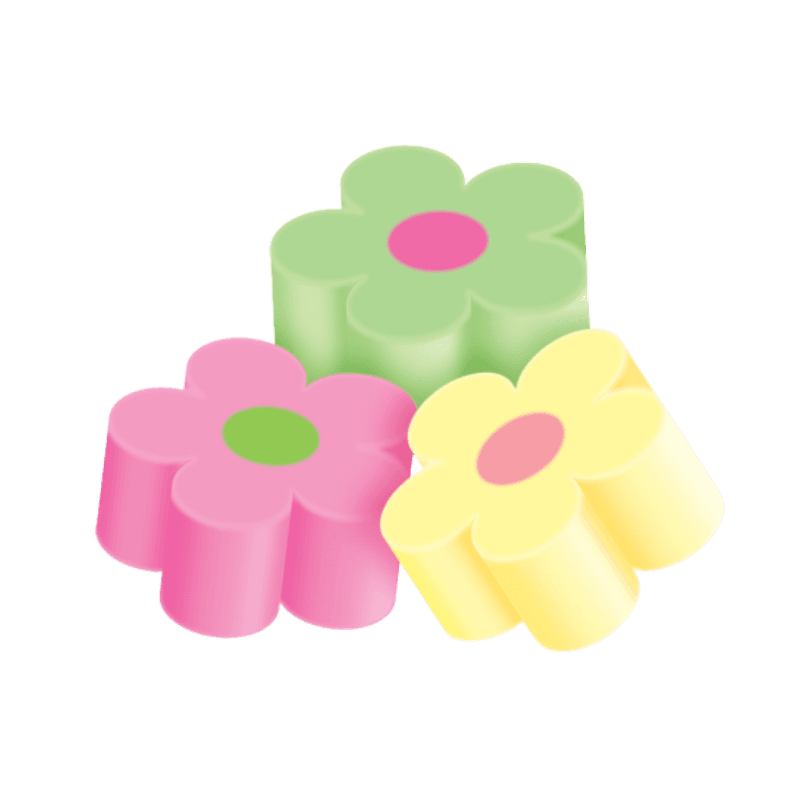 Estos malvaviscos vienen en sabores frutales suaves, pensados para brindar una experiencia agradable sin ser demasiado intensos. Además, los colores vibrantes como rosa, verde, amarillo o blanco hacen que cada figura resalte aún más. Esta combinación visual y de sabor convierte al producto en una opción versátil para consumo directo o para decorar postres.